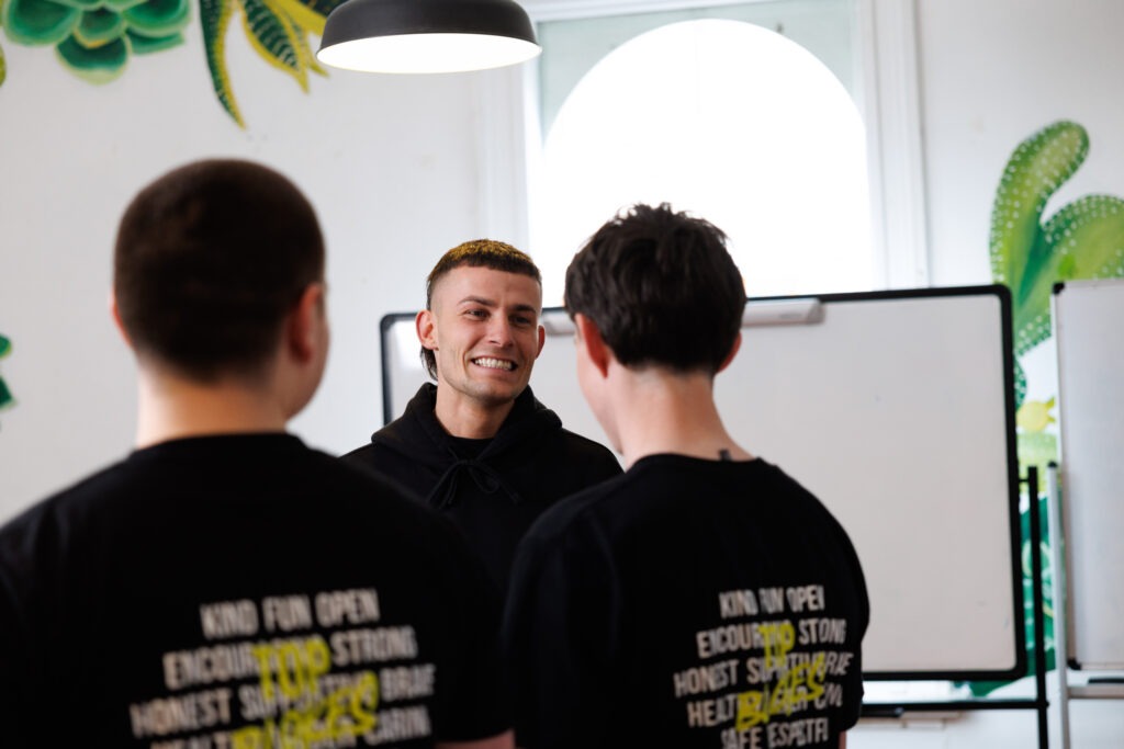 “It’s [Top Blokes] all about going into areas where young people are at – whether it be a school or somewhere else – and creating a space where young men can be themselves or find out who they are and start that journey. I think if a world can have more young people exploring themselves or being more themselves, we’ll get better outcomes,” says Harry.
